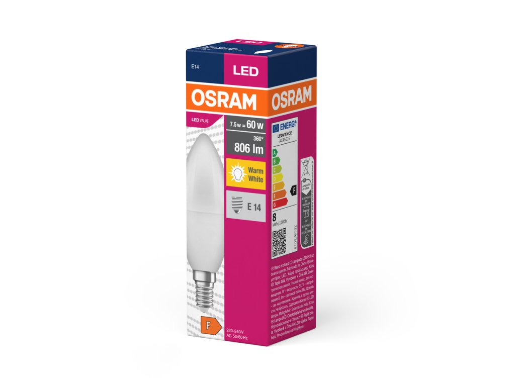 LEDV LED VALUE candle P60 7W/60W E14 2700K 806lm