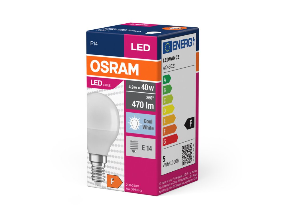 LED žárovky, klasický tvar malé koule. Vlastnosti výrobku: LED alternativa ke konvenčním světelným zdrojům. Nestmívatelné. Dobré podání barev (Ra ? 80) a barevná stálost po celou dobu životnosti světelného zdroje. Výhody výrobku: Nižší spotřeba energie než u žárovek nebo halogenových žárovek. Jednoduchá přímá náhrada za klasické žárovky. Okamžitě 100 % světla, bez náběhu. Oblasti použití: Všeobecné osvětlení. Domácí použití. Pouze pro vnitřní použití, nevhodné pro venkovní použití.Doplňkové parametry