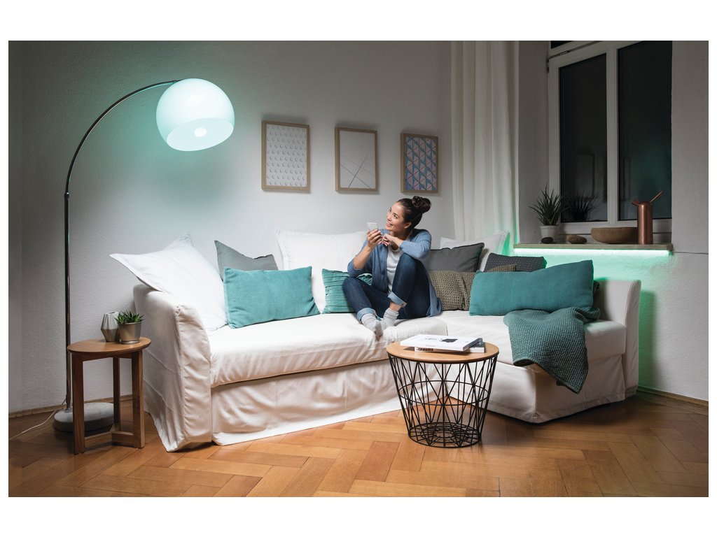 LED RGBW světelné zdroje s dálkovým ovládáním pro spotřebitele. Vlastnosti výrobku: Životnost: až 25 000 h. Umožňuje ovládání barev, úrovně sytosti a tlumení. Široká nabídka regulovatelných barev světla, včetně bílé. Čtyři dynamické efekty: Flash, Strobe, Smooth, Mode. Stmívání pomocí dálkového ovladače. Výhody výrobku: Snadná instalace. Nižší spotřeba energie než u žárovek nebo halogenových žárovek. Individuální ovládání. Pro ovládání světelného zdroje není zapotřebí žádná aplikace ani chytrý telefon. Pohodlné a intuitivní infračervené dálkové ovládání. Přepínání, stmívání ve čtyřech krocích a ovládání barvy stiskem tlačítka. Barevné smyčky pro dynamické změny barev. Oblasti použití: Domácí použití. Pouze pro vnitřní použití, nevhodné pro venkovní použití. Bezpečnostní informace: Nedotýkejte se světelného zdroje, pokud je rozbitý.. Nepoužívejte, pokud je vnější světelný zdroj vadný..Doplňkové parametry