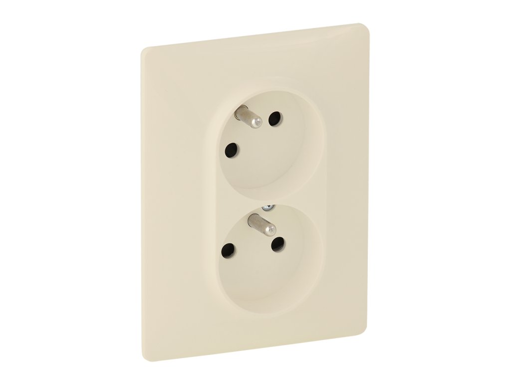 Dvojzásuvka 2x2P+T béžová 16A 250V IP2X s dětskými clonkami, automatické svorky, pootočená horní dutinka. Přístroj je dodáván s krytkou a rámečkem.Doplňkové parametry