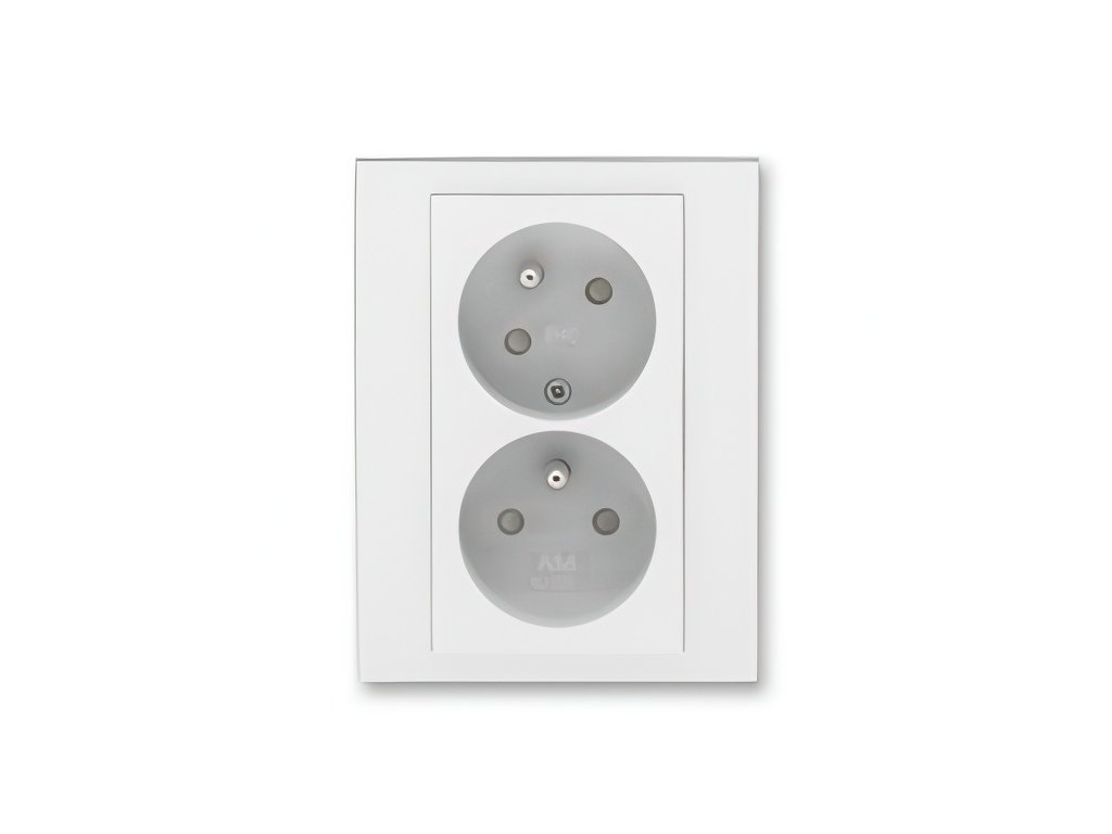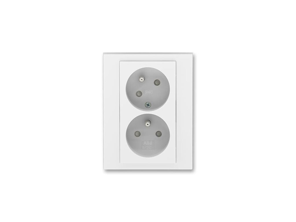 Zásuvka dvojnásobná s ochr. kolíky, s clonkami, s natočenou dutinou; bílá/ledová bíláDoplňkové parametry