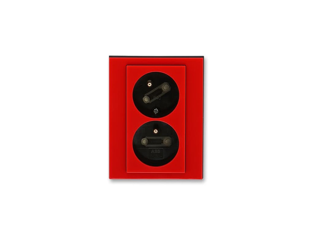 Zásuvka dvojnásobná s ochr. kolíky, s clonkami, s natočenou dutinou; červená/kouř. černáDoplňkové parametry