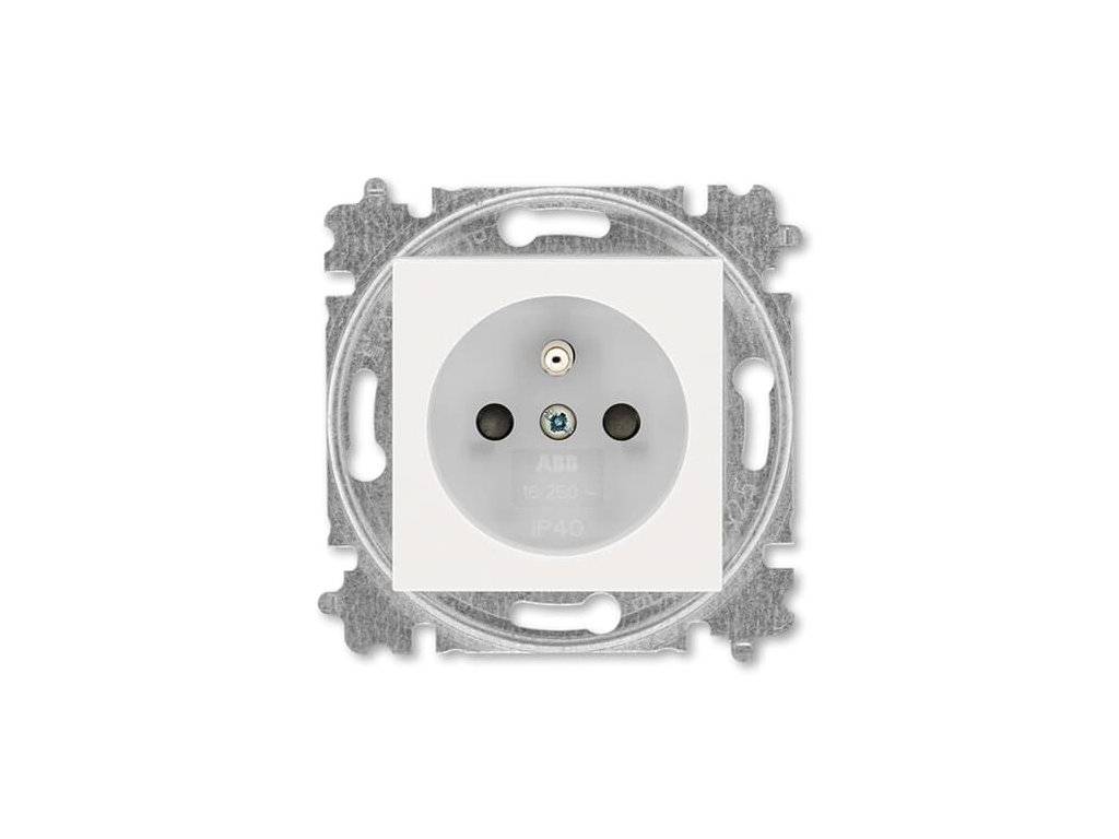 Zásuvka jednonásobná s ochranným kolíkem, s clonkami; perleťová/ledová bíláDoplňkové parametry