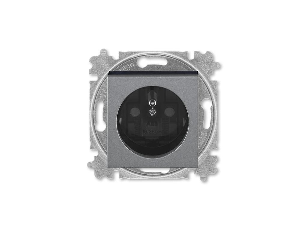 Zásuvka jednonásobná s ochranným kolíkem, s clonkami; ocelová/kouř. černáDoplňkové parametry