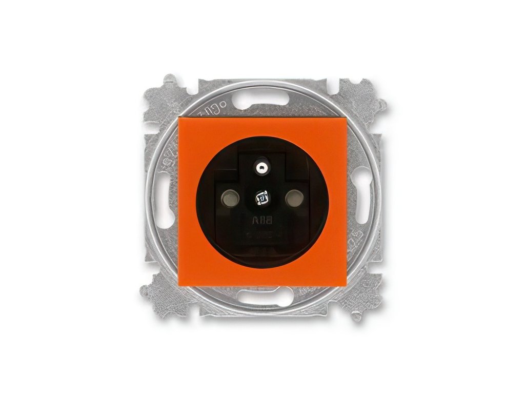 Zásuvka jednonásobná s ochranným kolíkem, s clonkami; oranžová/kouř. černáDoplňkové parametry