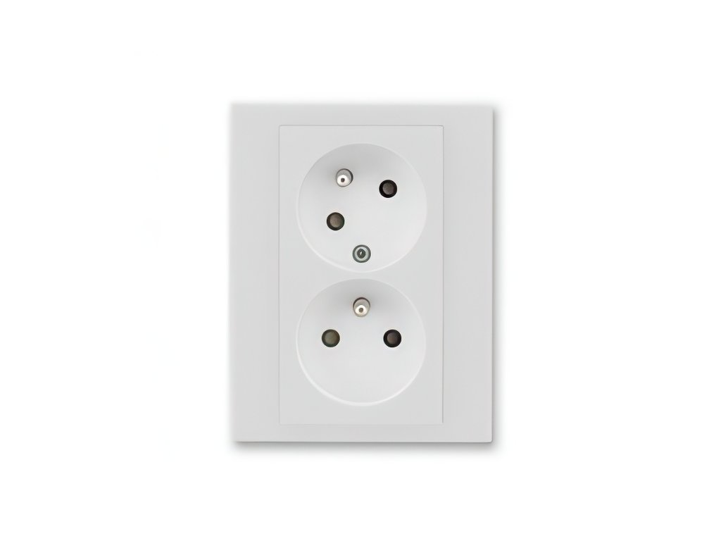 Zásuvka dvojnásobná s ochr. kolíky, s clonkami, s natočenou dutinou; šedá/bíláDoplňkové parametry