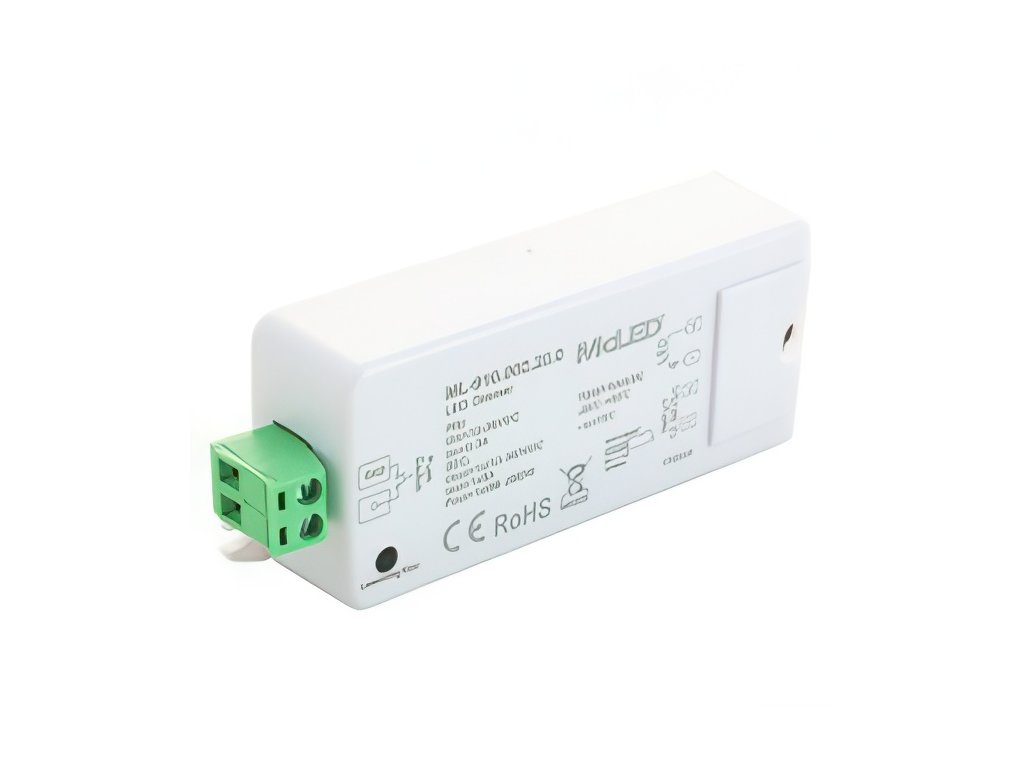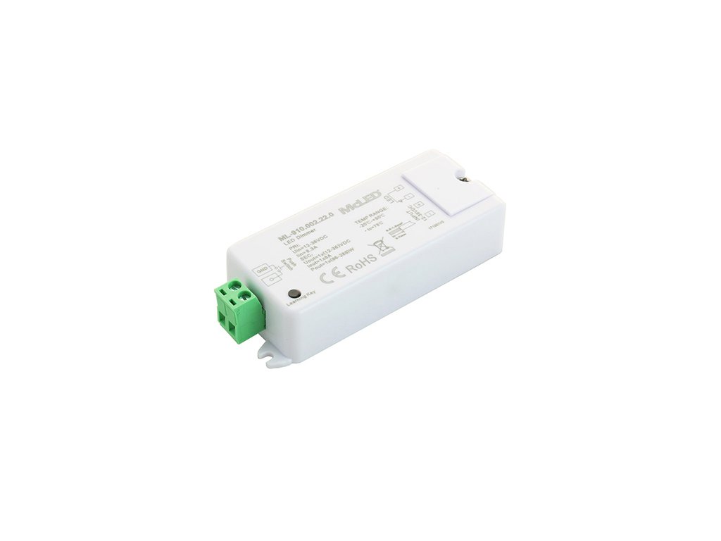 Přijímač k dálkovému RF ovladači pro řízení jasu (stmívání) jednobarevných LED pásků (ovladač není součástí). Lze ovládat také libovolným tlačítkem. Rozměry: 95x37x20mm. Vstupní napětí: DC 12-36V. Max. zátěž: 96W/12V, 192W/24V, 288W/36V. Po výpadku napájení si pamatuje poslední nastavenou hodnotu/režim.Doplňkové parametry