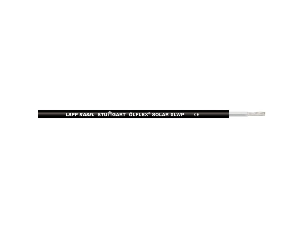 Solární kabel ÖLFLEX® SOLAR XLWP 1x4 WH/BK; Solární kabel; 1X4; černá; 5.8 mm; Provozní napětí (max.): 1,8kVDC; Polymerová směs zesítěná elektronovým paprskem; Flexibilní; Trvalé použití pod vodou až do: 1m; ; Bez halogenůImpact-Resistance-Test dle: UL854; Crush-Resistance test dle: UL854; Anwendungsgebiete: Na základě vodotěsnosti AD8 doporučila v září 2018 společnost Solartechnik Bayern, aby byl tento výrobek pro aplikace ve fotovoltaických zařízeních uložen v zemi v ochranných, k tomu určených hadicích / kanálech;Zařízení PV se systémovým napájením DC do max 1800 V;Může být uložen v zemi bez ochranného potrubí v profesionálně postaveném kabelovém výkopu s nejméně 50 cm zasypané zeminy (70 cm pod silnicí) nad výstražnou páskou nad krycí plastovou deskou nad nejméně 10 cm krycí vrstvy písku nad kabelem položeným na nejméně 10 cm vysoké vrstvě pískového lože;Pro flexibilní použití nebo jako součást fotovoltaických instalací v budovách;Pro kabeláž solárních modulů, propojení jednotlivých modulů do řetězců a ke střídačům; Nutzen: Odolný proti mechanickému poškození;Alternativa pro pokrytí vodou, např kvůli zvýšené hladině vody v důsledku povodní;Přesná kontrola množství při pokládce díky metrovým značkám na plášti kabelu;V plášti vytlačený barevný pruh slouží jako ochrana proti přepólování při montáži;Omezené šíření plamene a tvorba toxických zplodin v případě požáruDoplňkové parametry