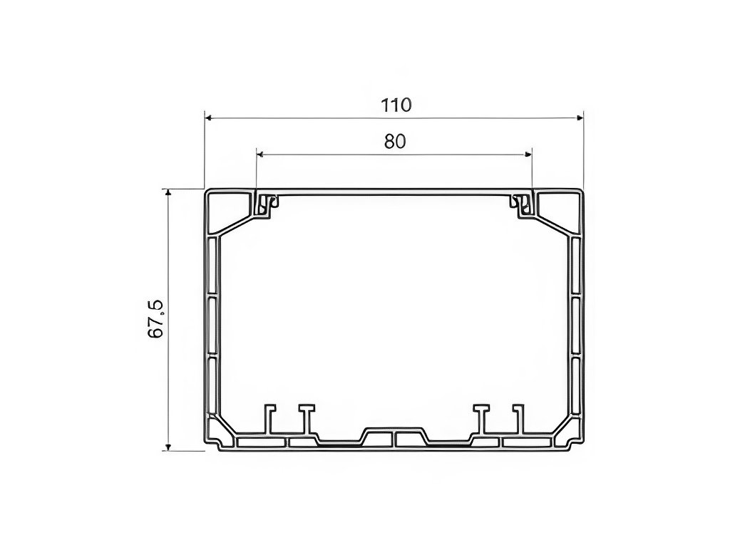 Parapetní kanál PK 110x65 D, bílý, 2 m, karton. Pro uložení silových a sdělovacích obvodů. Jednotlivé vedení je možno elektromagneticky odstínit pomocí stínícího kanálu. Lze do něj montovat klasické přístroje, je antibakteriální.Doplňkové parametry