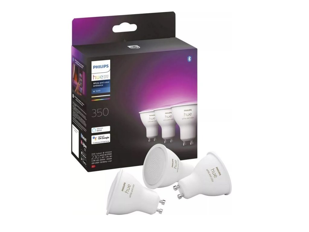 S těmito třemi chytrými LED žárovkami s paticí GU10 s miliony odstínů barevného i bílého světla, které jsou vhodné pro většinu standardních bodových svítidel, si můžete v jakékoli místnosti navodit atmosféru, jakou chcete.. Usnadněte si a zpříjemněte den předvolenými světelnými schématy speciálně vytvořenými pro vaše každodenní činnosti: Povzbuzující, Soustředění, Čtení a Relaxační. Dvě scény ve studených tónech, Povzbuzující a Soustředění, vám pomohou zahájit den a soustředit se, scény s teplejším světlem, Čtení a Relaxační, pak využijete, když si budete chtít pohodlně číst nebo nechat svou mysl odpočinout.Doplňkové parametry