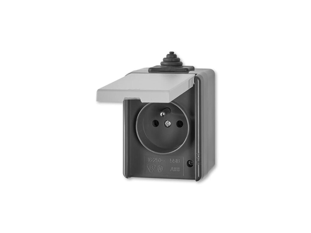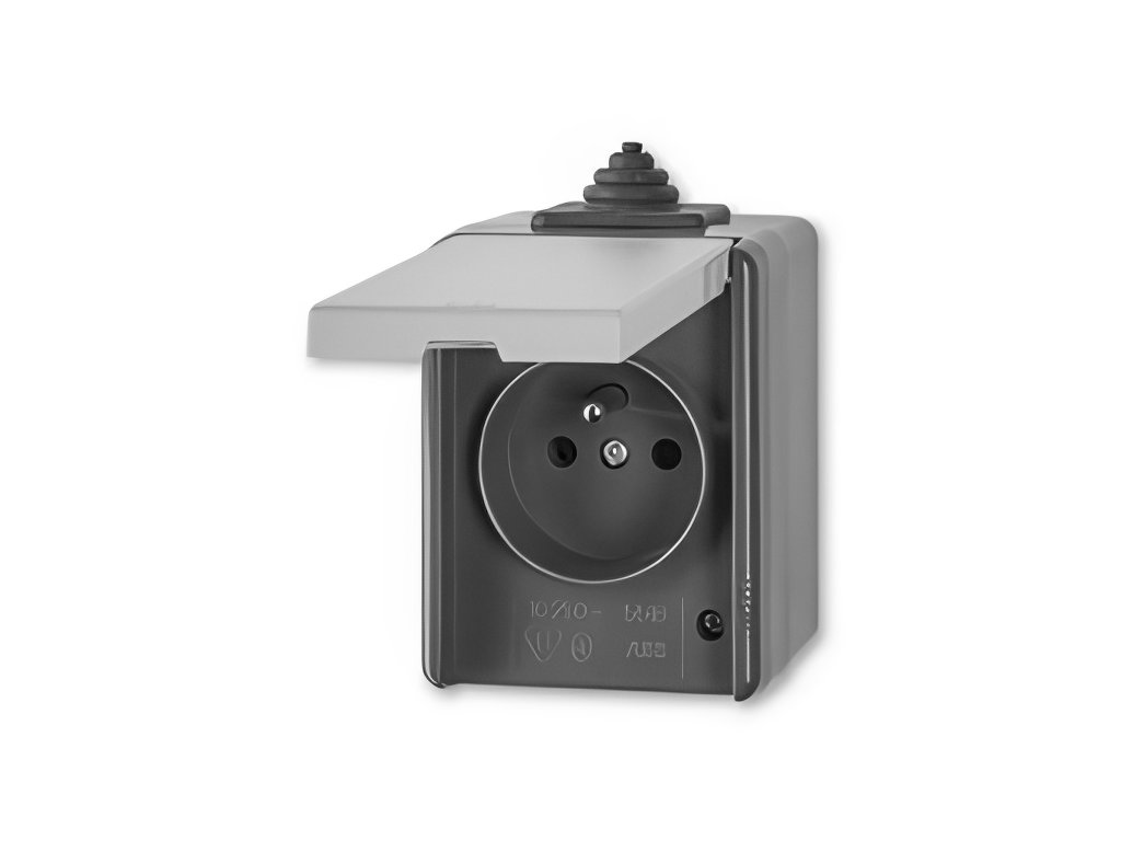 Zásuvka jednonásobná s víčkem, IP44; šedáDoplňkové parametry