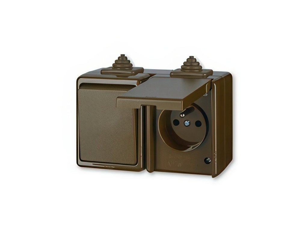 Kombinace přepínače střídavého a zásuvky jednonásobné, IP44; hnědáDoplňkové parametry