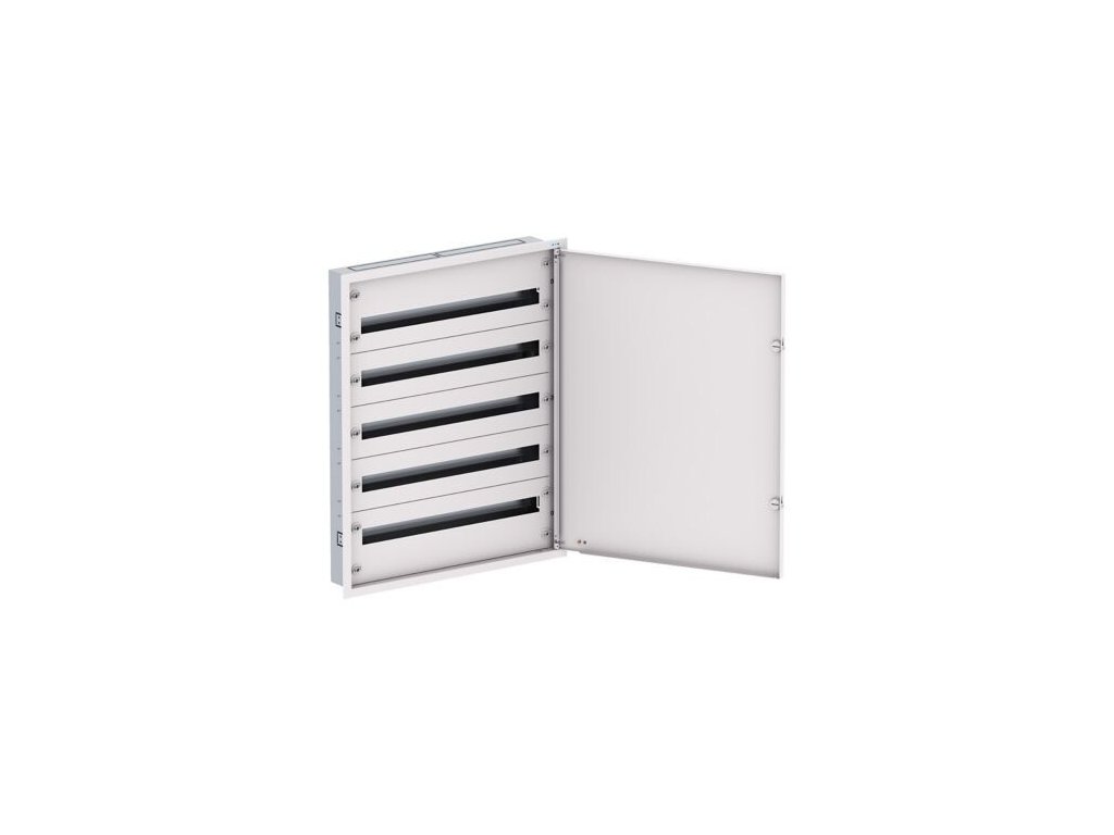 Complete BF-U-./..-C flush-mounted distribution board, white RAL 9016, 24 space units per row, 5 rows, height 920mm, width 588 mm, depth 136 mm, including door, front plates, DIN-rail mounting frame and neutral/PE terminals. Enclosure: closed design, including back plate, back plate can be used as a fixing plane, 2 cable gland plate inserts for slim distribution boards with a width of 24 space units, top, knockout cable entry openings on the bottom, terminals pre-assembled on enclosure (no loss of space units). Wall trough with door frame, back plate can be used as a fixing plane, cable entry openings that are easy to knock out, 127 mm depth , terminals pre-assembled on enclosure (no loss of space units), 4 side fixing brackets. Sheet steel door with cam lock included as standard, sheet steel door with expanded depth (required, for example, in order to install RMQ components in the door) (BFZ-OTR-./...) is available as an accessory. Removable DIN-rail mounting frame, for 45 mm modular installation devices, 150 mm DIN busbar distance, Eaton circuit-breakers can be integrated with installation kit , a universal mounting plate can be installed using an installation kit for flush-mounted enclosures (BFZ-U-MPL..). electrical contact for metal front plate achieved with special lock on enclosureDoplňkové parametry