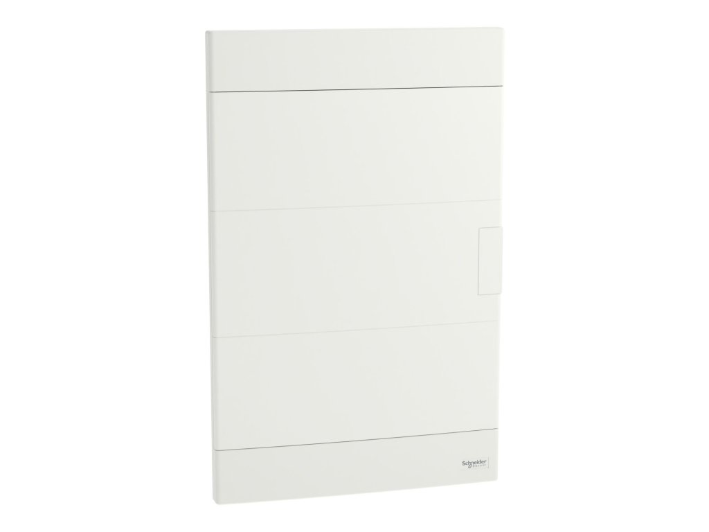 Tento Easy9 EU produkt je modulární skříň pro povrchovou montáž. Skládá se z 1 řady 12 modulů o průměru 18 mm. Lze do něj umístit všechny typy modulárních rozváděčů. Dodává se s 1 zemnicí a 1 nulovou svorkovnicí s jejich podpěrou a každá svorkovnice má 8 výstupů (4x16 mm2 + 4x10 mm2). Je vybaven oboustrannými hladkými dveřmi s úhlem otevření 180°. Barva skříně je bílá (RAL 9003). Tato skříň je určena pro vnitřní instalaci. Stupeň krytí je IP40 při zavřených dveřích a IP30 při otevřených dveřích. Na skříni nejsou žádné předvýřezy a zákazníci mohou k provedení použít vrtačku. Je určen pro nové nebo rekonstruované instalace v obytných budovách. Jmenovitý proud In je až 63 A. Jmenovité izolační napětí Ui je 500 V. Jmenovité provozní napětí Ue je 400 V. Vnitřní komponenty skříně jsou zadní skříň, odnímatelné šasi s DIN lištou a přední kryt s výřezem. Rozměry jsou (š) 285 mm x (v) 185 mm x (h) 96,5 mm. Šířka v roztečích 9 mm je 24. Hmotnost produktu je 0,80 kg. Kryt je vyroben ze samozhášivého plastu. Jeho odolnost proti plamenům a abnormálnímu teplu je 650 °C s dobou trvání 30 minut podle normy IEC 60695-2-10. Třída elektrické izolace je třída II (dvojitá izolace). Stupeň znečištění je 2. Podle normy IEC 62262 je stupeň ochrany IK07. Provozní teplota je od -25 °C do +60 °C. Skladovací teplota je od -25°C do +70°C. Tento kryt je v souladu s normou IEC 60670-1-24.Doplňkové parametry