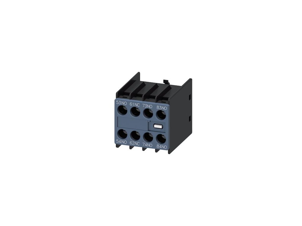 pomocný spínač z čelní strany, 3 NO + 1 NC proudová dráha 1 NO, 1 NC, 1 NO, 1 NO pro 3RH2 a 3RT2 šroubová svorka 53/54, 61/62, 71374, 83/84Doplňkové parametry