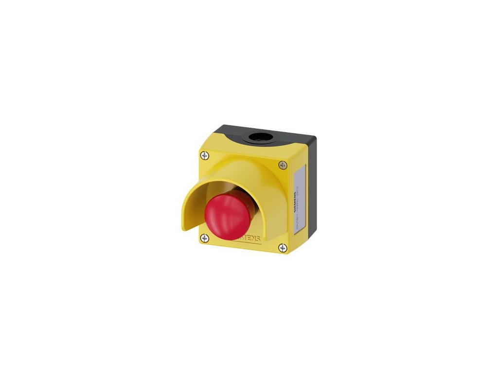 kryt pro povelová zařízení, 22 mm, kulatá, materiál krytu: plast, horní díl krytu žlutý, s ochranným límcem, 1 povelové místo plast, A=hřibové tlačítko nouzového zastavení červené, 40 mm, odblokovatelné otočením, 1NC, 1NC, šroubová svorka, připevnění na dno, nahoře a dole po 1xM20Doplňkové parametry