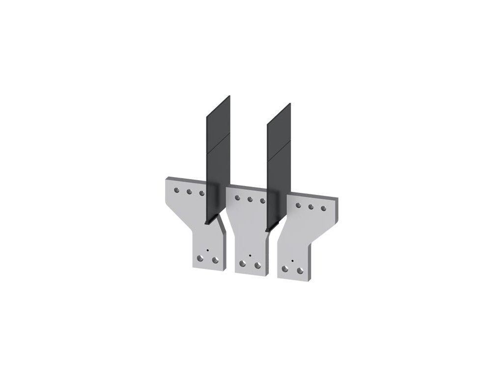 přední přívody - rozšířené, Cu/Al pasy / kabelová oka / flexibary, max. šířka pasů a kabelových ok 80 mm, max. tloušťka pasů a kabelových ok 5 mm, 3 ks, izolační přepážky 2 ks, pro 3VA15, 3VA25Doplňkové parametry