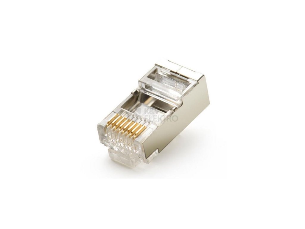 Stíněný neskládaný konektor RJ45 CAT5E STP 8p8c na kulatý profil kabelového pláště a vodiče licna. Konektory slouží k ukončení datových kabelů. Bez vložky Piny mají zlacení 50µDoplňkové parametry