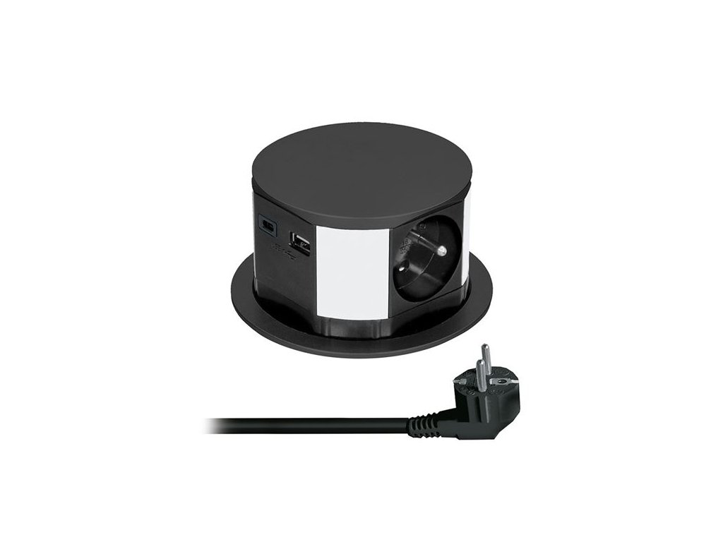 SOLIGHT ZÁSUVKA VYSUVNA 3z+USB 2m černý