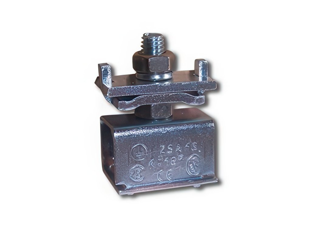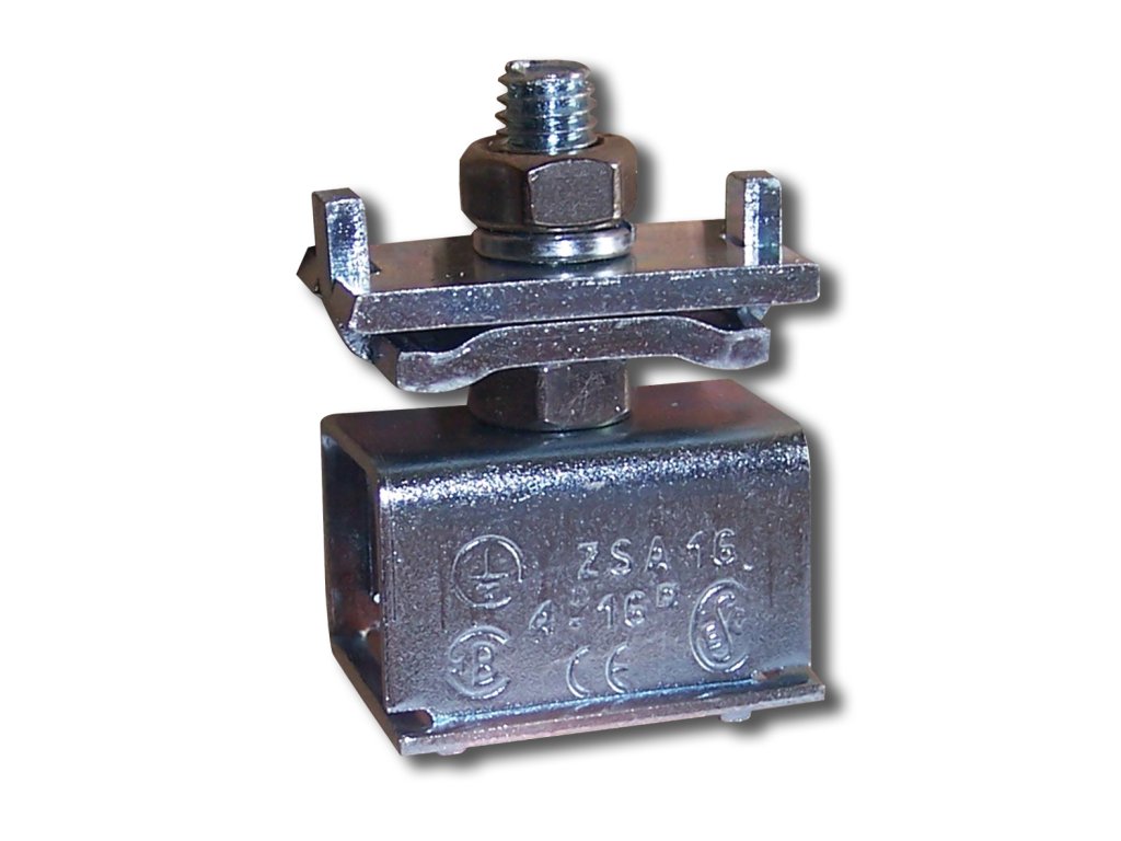 ZEMNICÍ SVORKA ZSA 16 - Pomocí této svorky lze připojit ochranný vodič na kovové předměty a konstrukce kruhového tvaru (např. trubky). Výrobek se skládá z vlastní svorky (vnitřní a vnější část), dvou příložek a jednoho šroubu (tyto části jsou ocelové, galvanicky pokovené). Součástí výrobku jsou též dvě matice M 6 pro připevnění vodiče mezi příložky svorky. Dokonalý styk s pospojovanou konstrukcí, zbavenou nátěrů a koroze, je zaručen obepnutím měděné nebo nerezové pásky a jejím stažením ve svorce. Svorku není doporučeno zalévat betonem či jinou hmotou. Měděná či nerezová páska není součástí zemnicí svorky ZSA 16 a je dodávána v délkách 0,5 m (pásek), 10 m (svitek) nebo 50 m (svitek). Dle požadavku zákazníka lze dodat pásku v atypických délkách.Doplňkové parametry