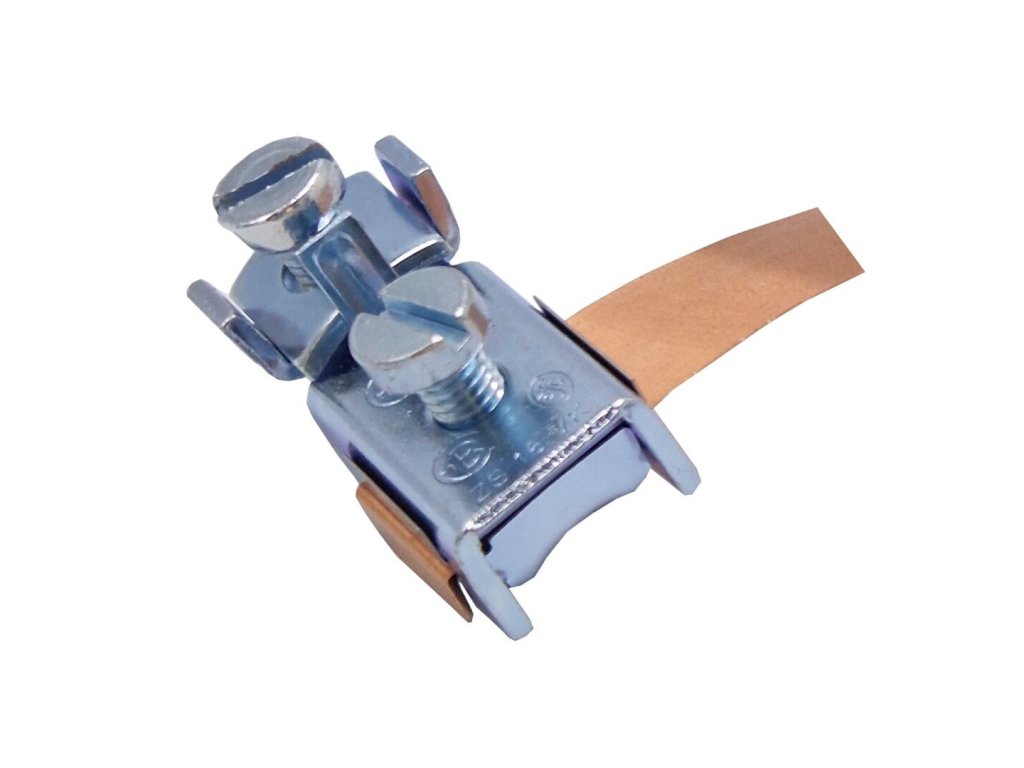 ZEMNICÍ SVORKA ZSA 16 - Pomocí této svorky lze připojit ochranný vodič na kovové předměty a konstrukce kruhového tvaru (např. trubky). Výrobek se skládá z vlastní svorky (vnitřní a vnější část), dvou příložek a jednoho šroubu (tyto části jsou ocelové, galvanicky pokovené). Součástí výrobku jsou též dvě matice M 6 pro připevnění vodiče mezi příložky svorky. Dokonalý styk s pospojovanou konstrukcí, zbavenou nátěrů a koroze, je zaručen obepnutím měděné nebo nerezové pásky a jejím stažením ve svorce. Svorku není doporučeno zalévat betonem či jinou hmotou. Měděná či nerezová páska není součástí zemnicí svorky ZSA 16 a je dodávána v délkách 0,5 m (pásek), 10 m (svitek) nebo 50 m (svitek). Dle požadavku zákazníka lze dodat pásku v atypických délkách.Doplňkové parametry