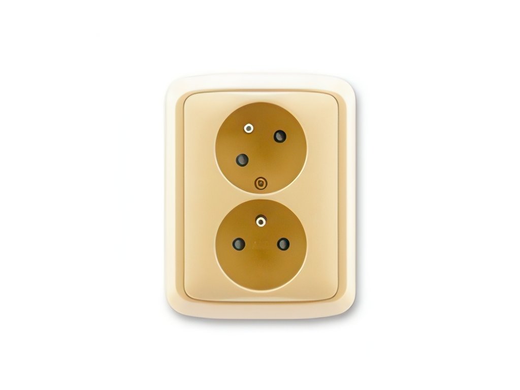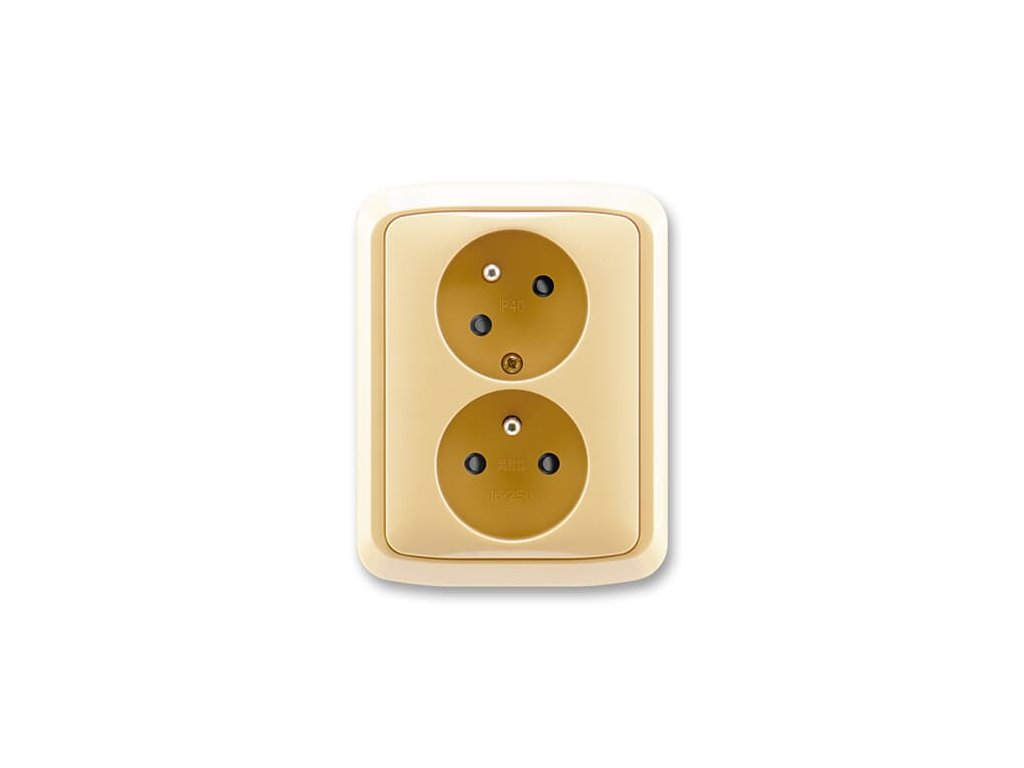 Zásuvka dvojnásobná s ochr. kolíky, s clonkami, s natočenou dutinou; béžováDoplňkové parametry