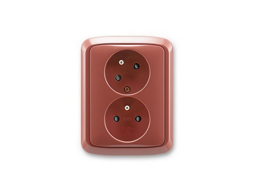 Zásuvka dvojnásobná s ochr. kolíky, s clonkami, s natočenou dutinou; vřesová červenáDoplňkové parametry