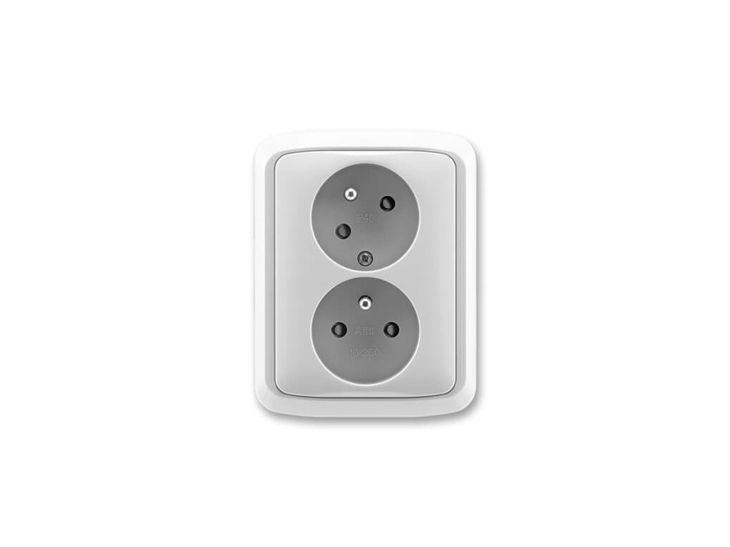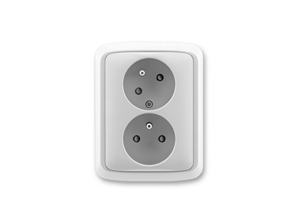 Zásuvka dvojnásobná s ochr. kolíky, s clonkami, s natočenou dutinou; šedáDoplňkové parametry