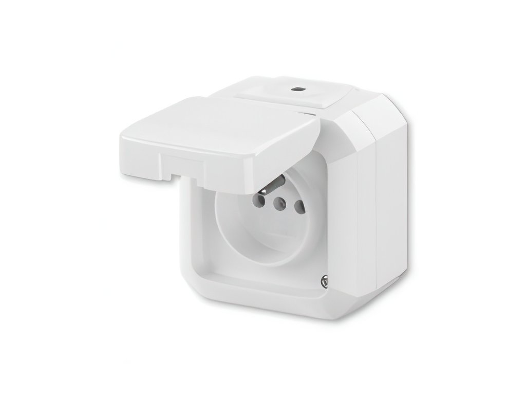 Zásuvka jednonásobná s ochranným kolíkem, s víčkem, IP54; bíláDoplňkové parametry