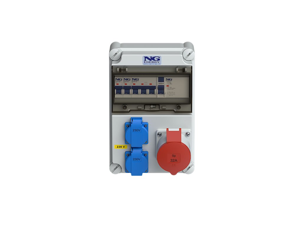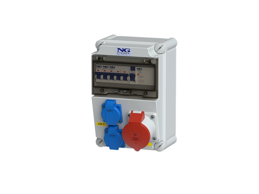 Zásuvky: 1x 32A/400V/5p, 2x 230V s ochr. kolíkem (česká), Jištění: 2x 16A/1P/B 10 kA, 1x 32A/3P/C 10 kA, Proudový chránič: 1x 40A/4P/30mA 10kA, V souladu s normou: ČSN EN 61439-3, Stupeň ochrany krytem: IP44, Jmenovitý proud: 40A, Jmenovité napětí: 400V, Teplotní rozsah použití: -25°C +40°C, Provedení: Nástěnné, Použití: Nástěnné, Pouzdro typ: BALS 61402, Materiál pouzdra: Polykarbonát, Materiál okénka: Polykarbonát, Počet okének: 1, Počet modulů pro přístroje: 9 modulů, Barva pouzdra: šedá, Vývodka: 1x MV-25 IP68 (součást balení), Logistické údaje: EAN: 8595169540235, Hmotnost: 2,92 kg, Rozměry použitého pouzdra: 276x184x148. Standardní řada zásuvkových kombinací v polykarbonátových pouzdrech, určená i pro náročné prostředí dílen a staveb. Výběr pouzder nabízí dostatečnou variabilitu i pro náročnější sestavy. Lze vytvářet i přenosné varianty s madlem, s přívodkou či přívodním kabelem. Stejně jako v jiných řadách NG ENERGY je i zde součástí bezpečné a přehledné instalace dvojitá smyčkovací svorkovnice (s výjimkou ekonomických variant). UV-odolný materiál, bezšroubové zásuvky Bals a snadné připojení i smyčkování tvoří základ vedoucí pozice na trhu běžných zásuvkových kombinací. KLÍČOVÉ VLASTNOSTI: pouzdro z vysoce kvalitního, nárazuvzdorného a UV stabilního polykarbonátu, odolné vůči stárnutí, extrémním teplotám, vysoká chemická odolnost, bezhalogenní, samozhášivé, uzamykatelné a plombovatelné kryty přístrojů, přehledné prodrátování, volitelně dvojitá připojovací svorkovnice, volitelně vnější zemnící bod, celkové krytí až IP65. Na základě vašich individuálních požadavků je možné vytvořit jakoukoliv konfiguraci!Doplňkové parametry