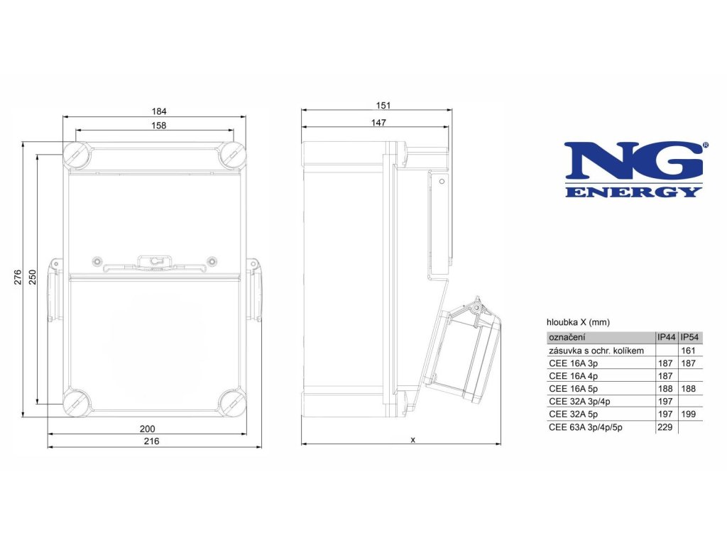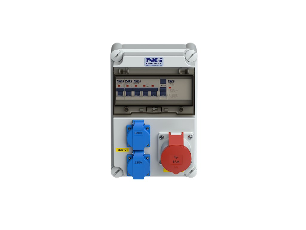 Zásuvky: 1x 16A/400V/5p, 2x 230V s ochr. kolíkem (česká), Jištění: 1x 16A/3P/C 10 kA, 2x 16A/1P/B 10 kA, Proudový chránič: 1x 40A/4P/30mA 10kA, V souladu s normou: ČSN EN 61439-3, Stupeň ochrany krytem: IP44, Jmenovitý proud: 32A, Jmenovité napětí: 400V, Teplotní rozsah použití: -25°C +40°C, Provedení: Nástěnné, Použití: Nástěnné, Pouzdro typ: BALS 61402, Materiál pouzdra: Polykarbonát, Materiál okénka: Polykarbonát, Počet okének: 1, Počet modulů pro přístroje: 9 modulů, Barva pouzdra: šedá, Vývodka: 1x MV-25 IP68 (součást balení), Logistické údaje: EAN: 8595169540211, Hmotnost: 2,67 kg, Rozměry použitého pouzdra: 276x184x148. Standardní řada zásuvkových kombinací v polykarbonátových pouzdrech, určená i pro náročné prostředí dílen a staveb. Výběr pouzder nabízí dostatečnou variabilitu i pro náročnější sestavy. Lze vytvářet i přenosné varianty s madlem, s přívodkou či přívodním kabelem. Stejně jako v jiných řadách NG ENERGY je i zde součástí bezpečné a přehledné instalace dvojitá smyčkovací svorkovnice (s výjimkou ekonomických variant). UV-odolný materiál, bezšroubové zásuvky Bals a snadné připojení i smyčkování tvoří základ vedoucí pozice na trhu běžných zásuvkových kombinací. KLÍČOVÉ VLASTNOSTI: pouzdro z vysoce kvalitního, nárazuvzdorného a UV stabilního polykarbonátu, odolné vůči stárnutí, extrémním teplotám, vysoká chemická odolnost, bezhalogenní, samozhášivé, uzamykatelné a plombovatelné kryty přístrojů, přehledné prodrátování, volitelně dvojitá připojovací svorkovnice, volitelně vnější zemnící bod, celkové krytí až IP65. Na základě vašich individuálních požadavků je možné vytvořit jakoukoliv konfiguraci!Doplňkové parametry