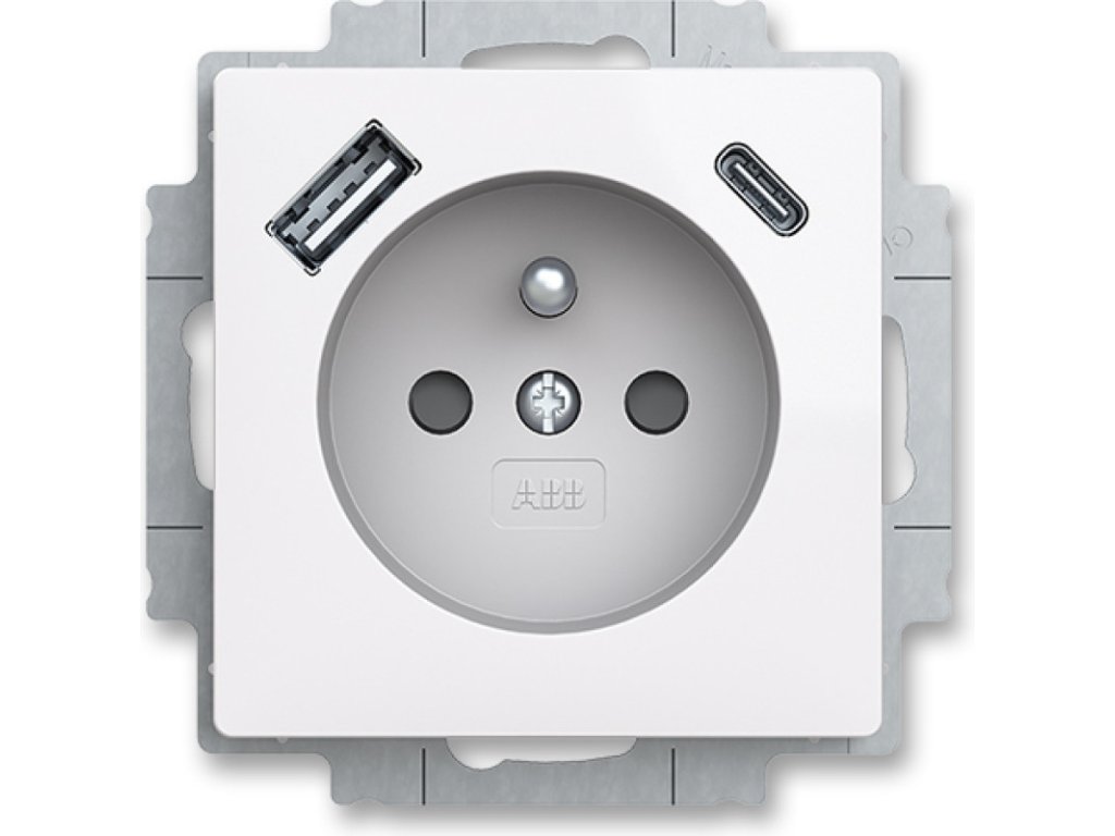 Zásuvka 1násobná s kolíkem, s clonkami, s nabíjením USB-A, USB-C